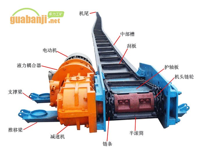 刮板輸送機簡稱刮板機,俗稱電溜子,用刮板鏈牽引,在槽內(nèi)運送散料。