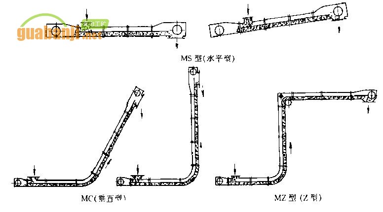 埋刮板輸送機(jī)產(chǎn)品常見型號及布置形式示意圖:
