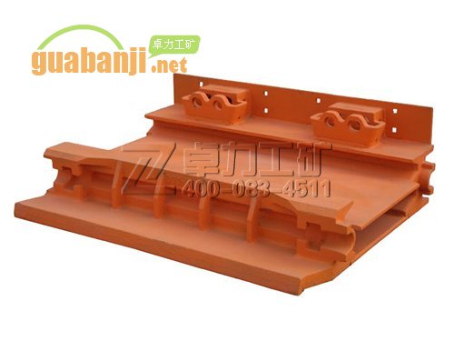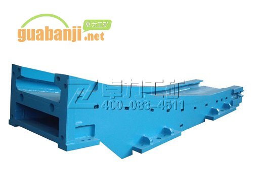 溜槽分為中部槽、調(diào)整溜槽和過(guò)渡溜槽,溜槽是整個(gè)刮板運(yùn)輸機(jī)的機(jī)身,有一定的強(qiáng)度,有較高的耐磨性。中部槽又叫標(biāo)準(zhǔn)槽,其規(guī)格為1500*620*180,每節(jié)溜槽可偏轉(zhuǎn)30。