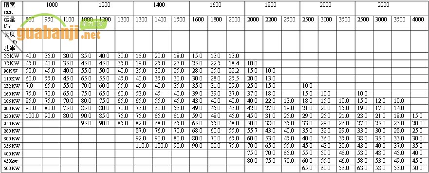 11、ZGB重型刮板機(jī)功率、長(zhǎng)度選擇表