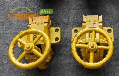 阻鏈器用來(lái)在緊鏈過(guò)程中卡阻輸送機(jī)上的刮板鏈,使鏈條張緊。將阻鏈器放在過(guò)渡槽的預(yù)設(shè)孔中,點(diǎn)反車,使上鏈緩緩運(yùn)行至阻鏈器時(shí)受到機(jī)械阻力而使刮板鏈張緊;鏈條接好后,逆時(shí)針轉(zhuǎn)動(dòng)手輪松開緊鏈器,接通動(dòng)力源,點(diǎn)正車后,撤去阻鏈器。